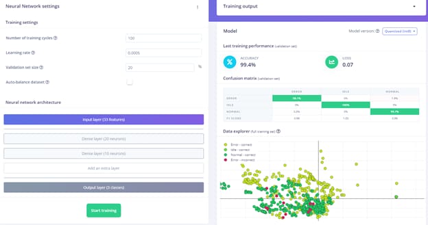 Edge Impulse makes building a ML model very easy. You only need to collect the sensor data and train the model on