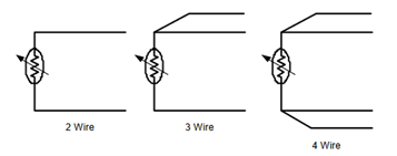 The RTD sensing element is a wire coil or deposited film of pure metal. The resistance of this element increases with temperature in a known, constant, and repeatable manner (i.e., a positive temperature coefficient). Like the thermistor, RTDs are current-driven sensors, but with better performance and higher sensitivity. Standard models often sense from −260°C to +650°C. From a basic electrical-model perspective, the RTD is similar to the thermistor, and they even have similar schematic symbols, but their parameters are quite different (Figure 4).