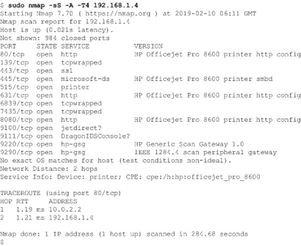 Figure 2: The image shows a sample port scan of a local printer. (Source: Author)