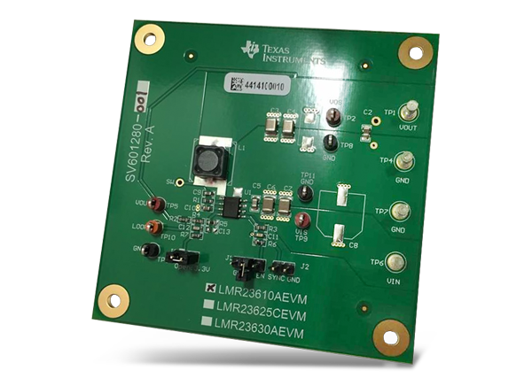 Texas Instruments LMR23610AEVM Step-Down Converter Evaluation Module (EVM) is a fully assembled and tested circuit for evaluating the LMR23610ADDAR. The LMR23610ADDAR is a 36V 1A synchronous step-down converter. This evaluation module operates from 4V to 36V input (12V nominal) and provides a 5.0V/3.3V output at 1A. The board has jumper connectors to select output options, enable or disable the converter operation and synchronize to an external clock. The Texas Instruments LMR23610AEVM also has AC signal injection terminals for feedback loop measurements.Features